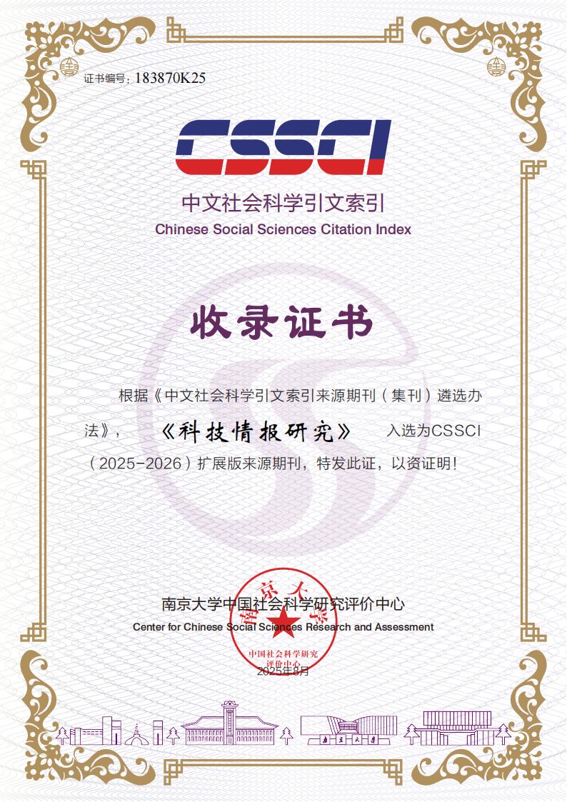 《科技情报研究》持续入选CSSCI扩展版来源期刊